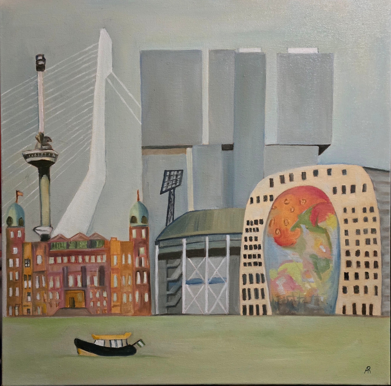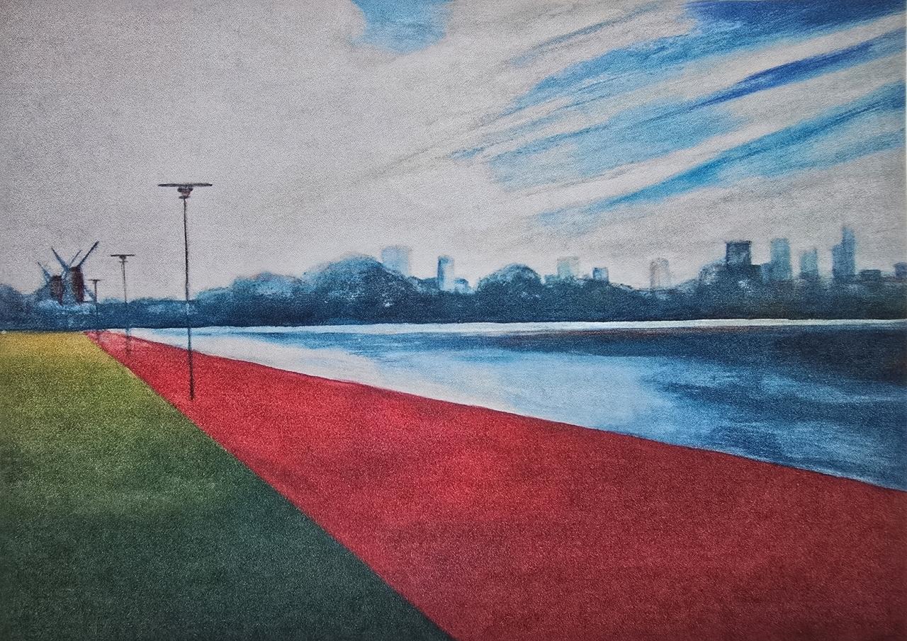 skyline Rotterdam rood vanaf Kralingse Plas