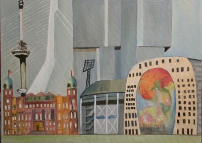 Skyline Rotterdam blauw vanaf Kralingse Plas